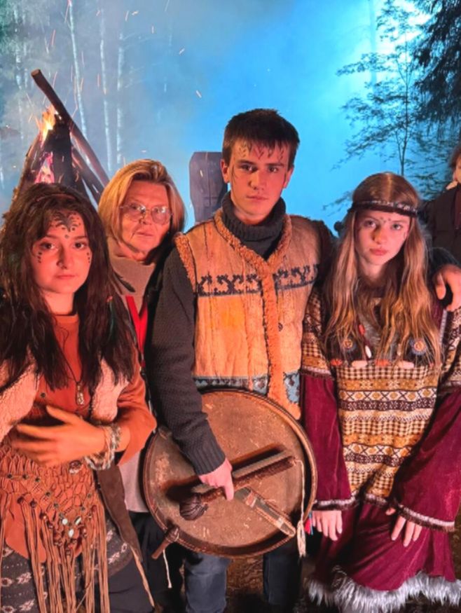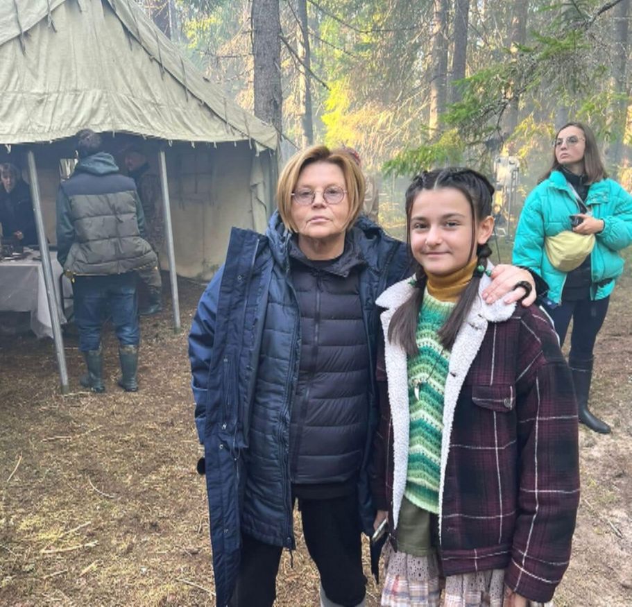 На съёмочной площадке Серафима работает рядом с бабушкой по папиной линии — Еленой Николаевой, мамой Ивана Рудакова.