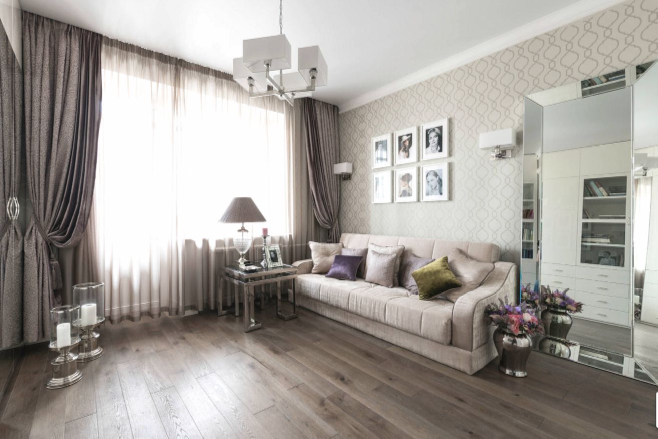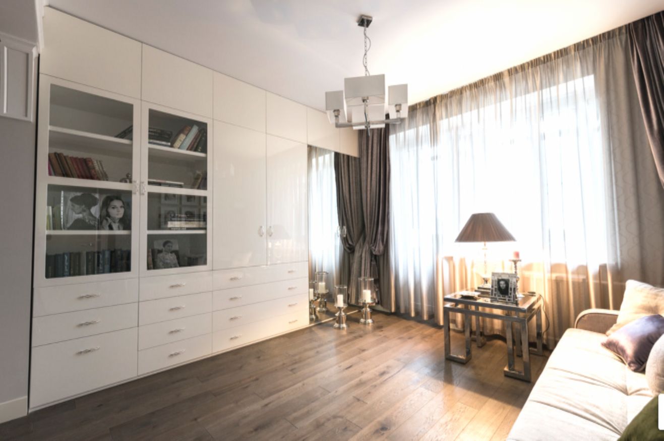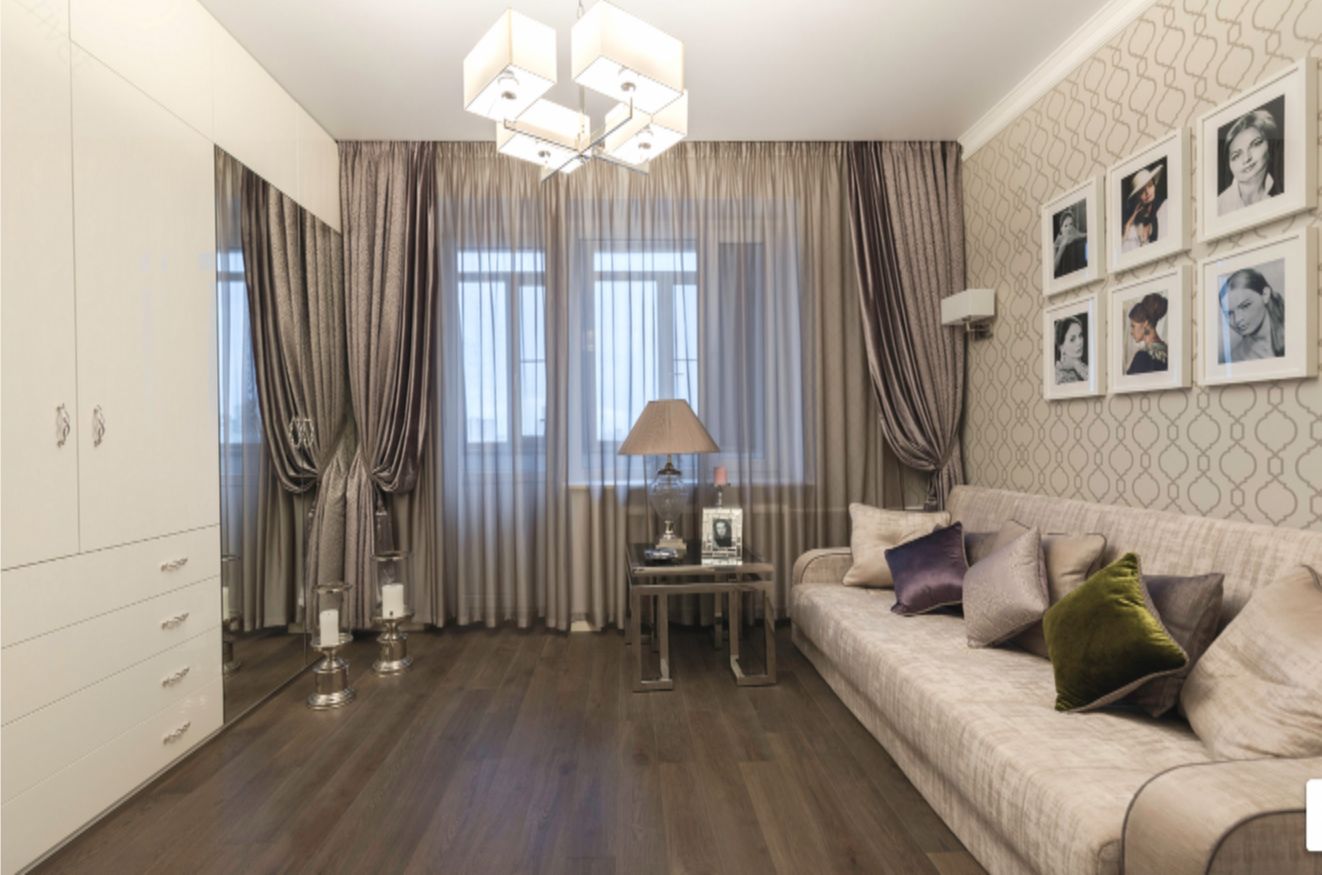 Интерьер преобразился до неузнаваемости. Комната заиграла новыми красками благодаря дизайнерским обоям с блеском стекляруса, изысканным тканям и мебели из Голландии. Балкон, прихожую и основную комнату полностью обновили.