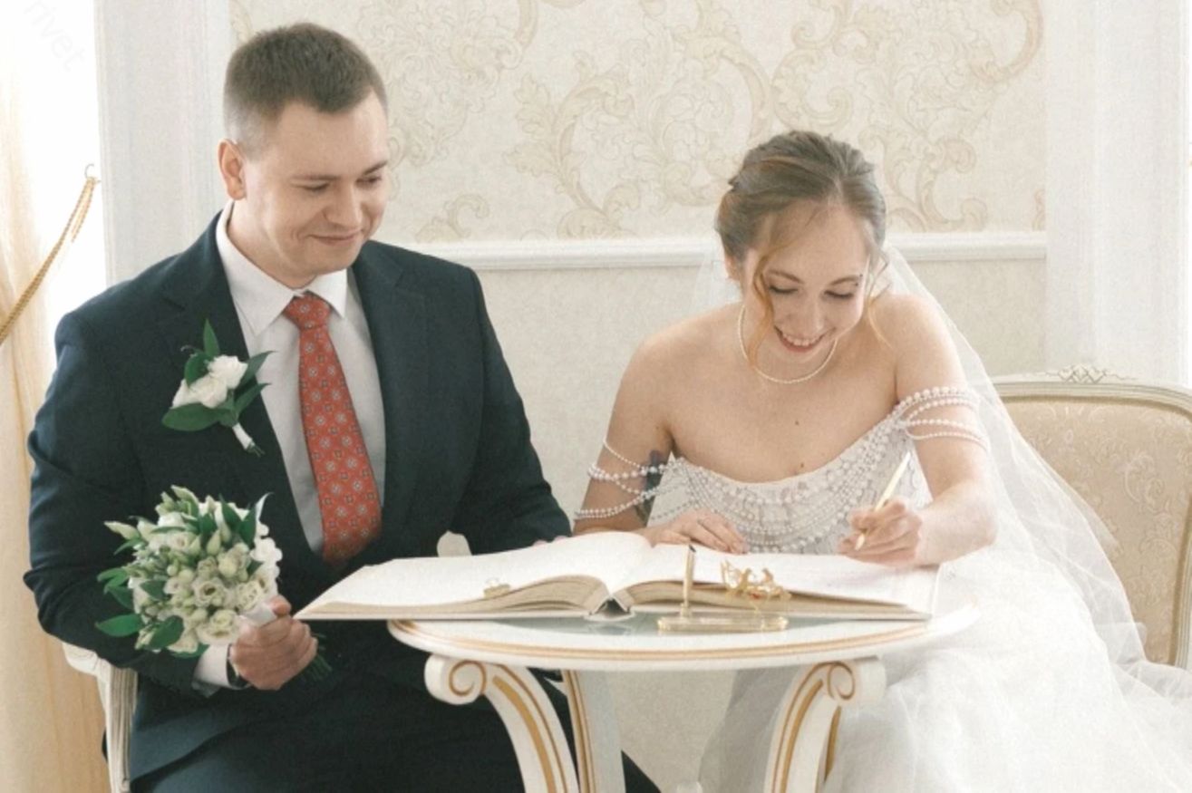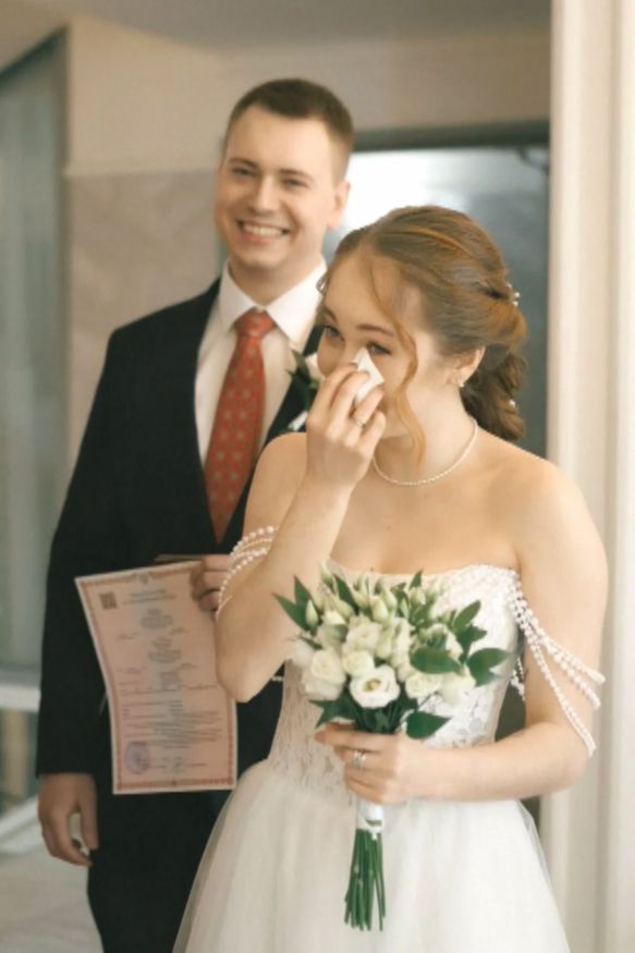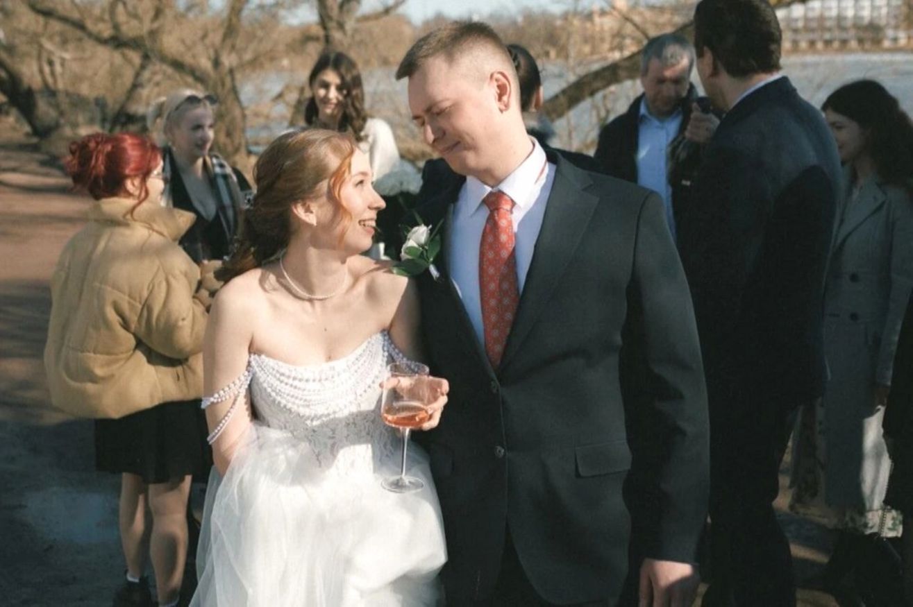 Праздник отметили в питерском ресторане. Настя блеснула на свадьбе в нежно-белом подвенечном платье с жемчужными вставками и глубоким декольте.
