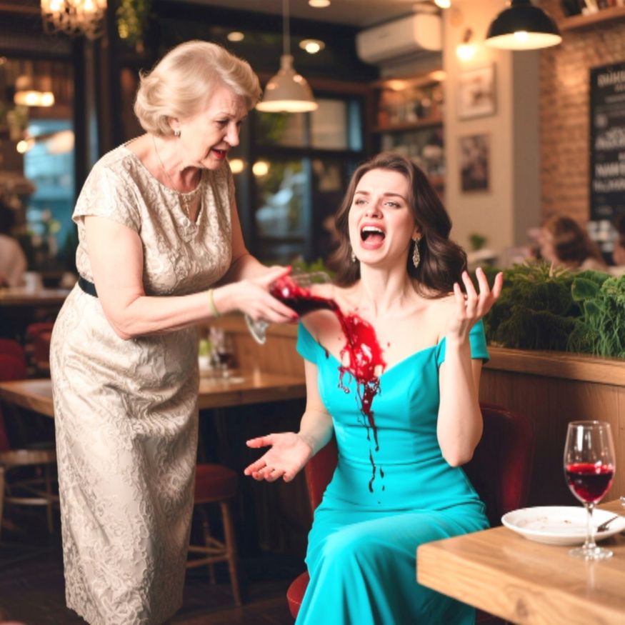Но Валентина Петровна уже не слушала. Она схватила бокал с красным вином и, размахнувшись, выплеснула содержимое прямо на Лену.
