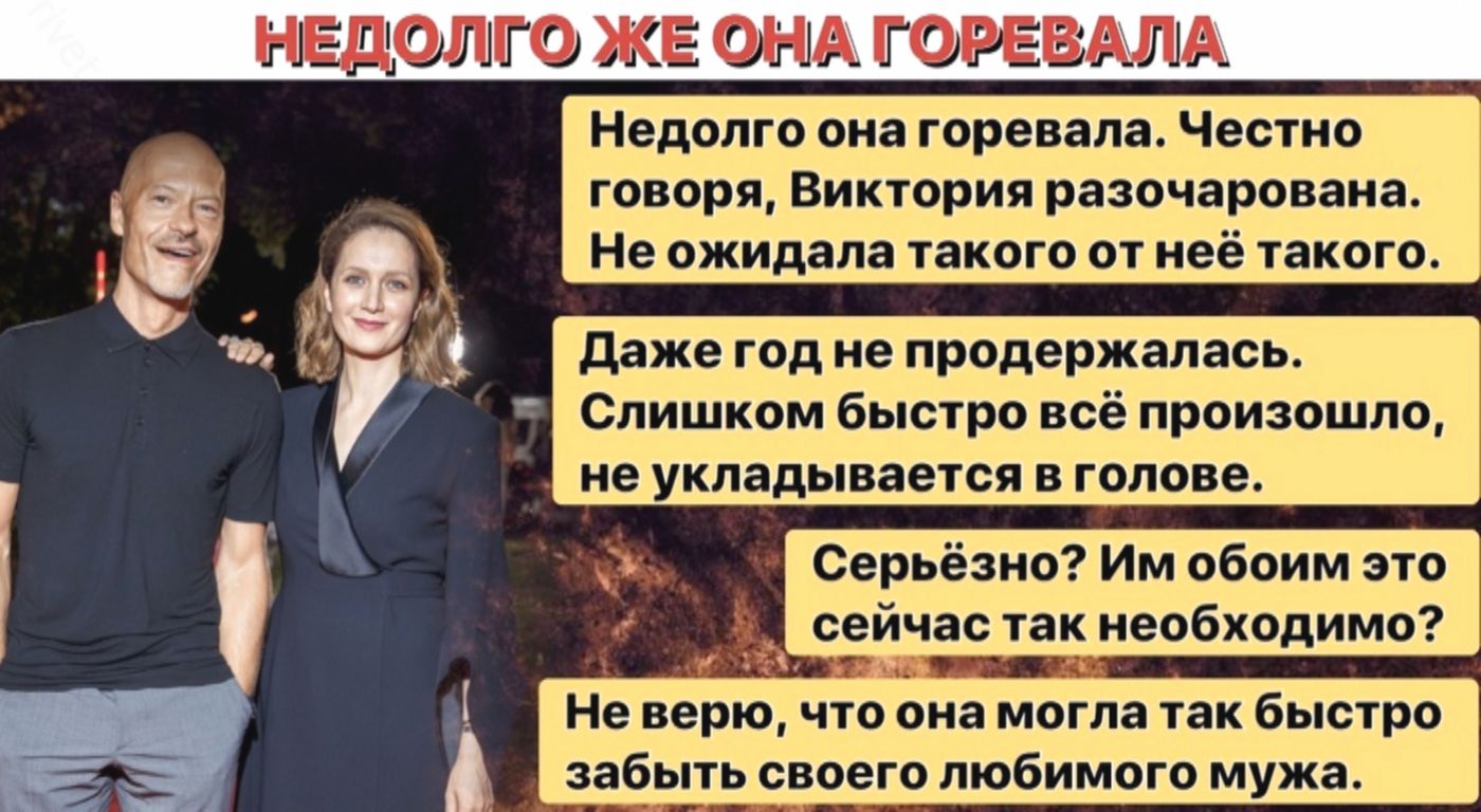 Люди из близкого окружения Виктории Исаковой решительно отвергают обвинения в её адрес, считая их несправедливыми. В числе тех, кто встал на защиту актрисы, — продюсер Леонид Дзюник. Он подчёркивает, что артистка глубоко и искренне переживала утрату супруга: их союз был наполнен особой теплотой, а потому предположения о поспешном начале новых отношений кажутся ему маловероятными — Дзюник склоняется к версии, что шумиха вокруг имени Исаковой может быть связана с пиаром.