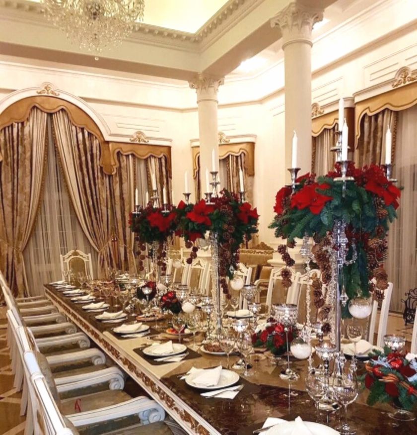 Представьте себе: семья собирается за этим столом на завтрак или обед. Солнце светит через окна, блюдо на столе дымится… Вообще, это больше похоже на кадр из какого-то исторического сериала про дворцы и вельмож. Но нет, это просто завтрак в доме певца.​