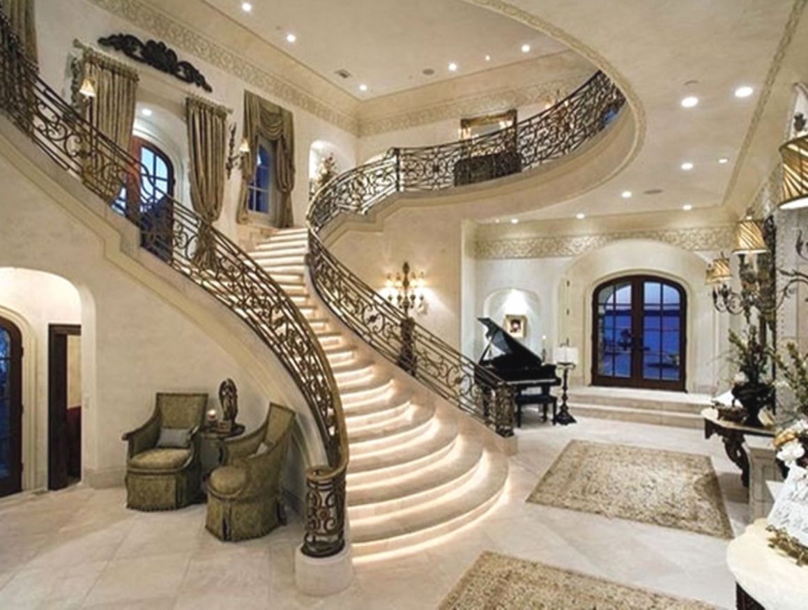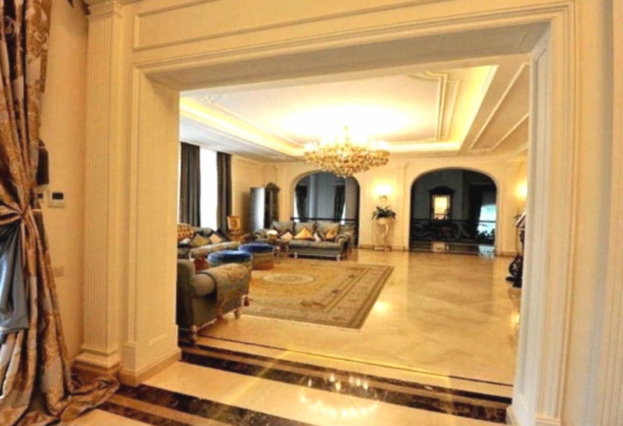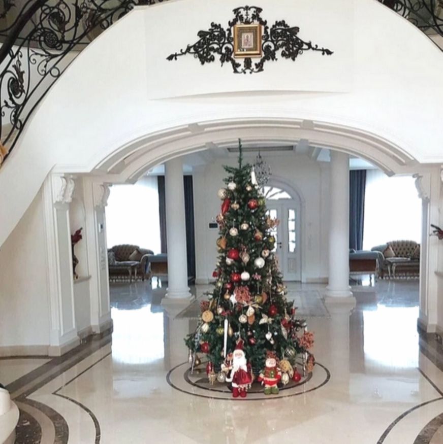 Дом полон деталей, которые кричат о роскоши. Пышная лепнина буквально везде — на потолках, на стенах, в углах. Колонны, витражи, мраморные элементы… Это не просто дизайн, это заявление о статусе.​