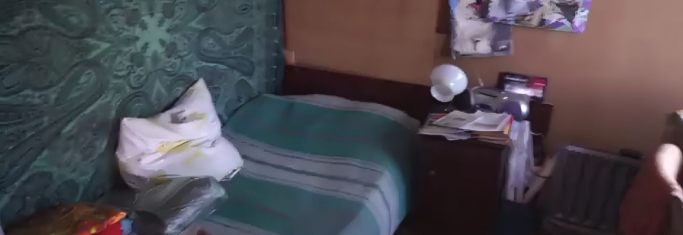 Домик — розовый, маленький, простой. Внутри — деревянная вагонка, старый диван, техника из прошлого века, которую Сергей хранит из-за нежной ностальгии. Здесь можно увидеть старый радиоприёмник «Альпинист» и допотопный телевизор с антенной, который едва ловит сигнал.