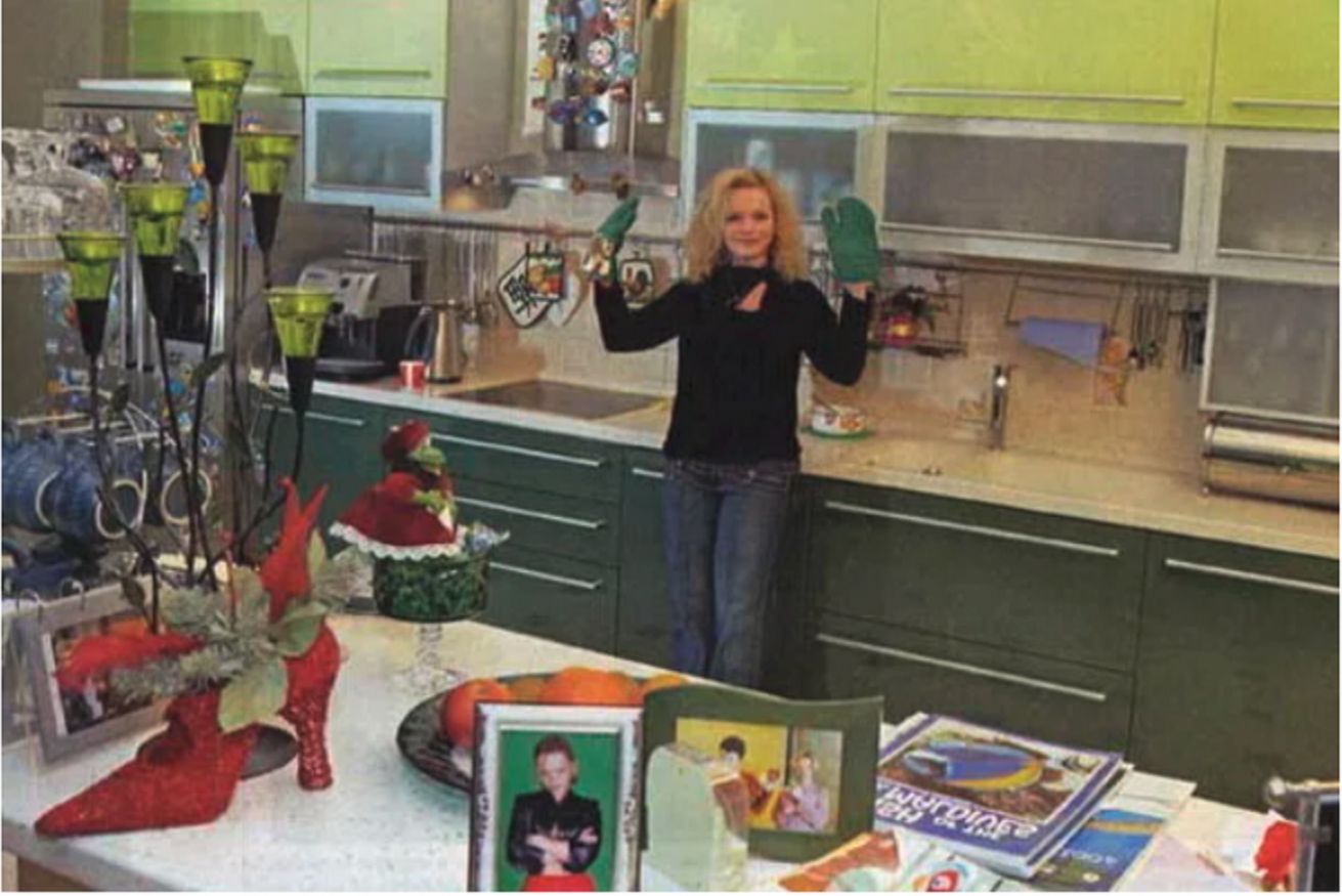Нет той оливково-изумрудной барной стойки, как в Хамовниках, — здесь всё проще, для семьи. Думаю, Лариса варит кофе по утрам, смотрит на пруд с карасями и думает о гастролях. Кстати, соседи болтают, что хозяйка любит готовить сама — ну, с таким домом и не захочешь есть в ресторанах!