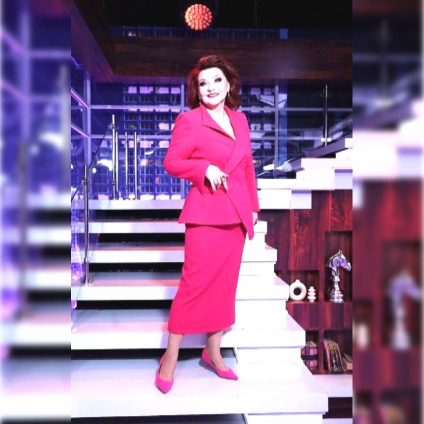 На сцене юмористка появилась в ярком костюме цвета фуксии, подчеркнувшем ее заметно постройневшую фигуру. Образ дополнили туфли-лодочки на шпильке и выразительный макияж.