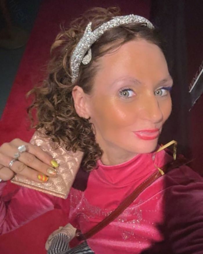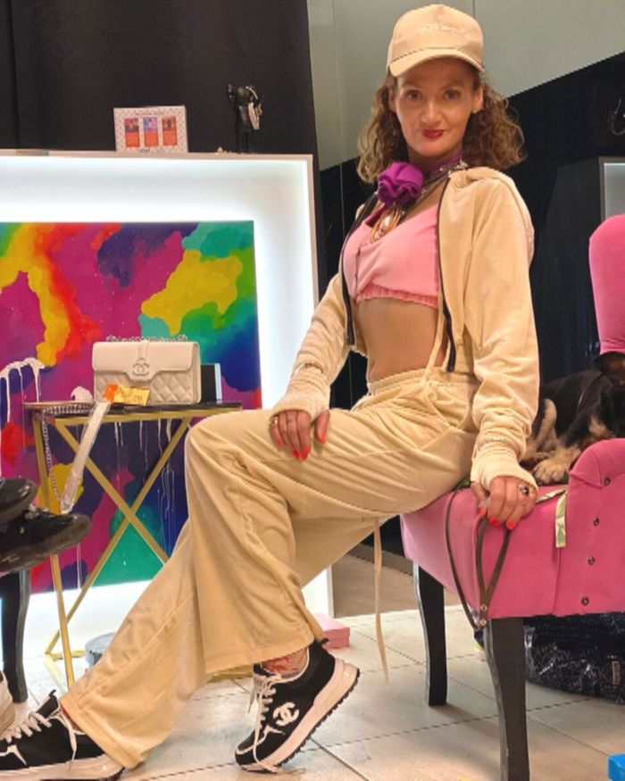 Её стиль за эти годы почти не изменился — всё тот же «а-ля Плюшкин»: копии брендовых вещей, обилие автозагара, странные аксессуары и намеренная чрезмерность во всём.