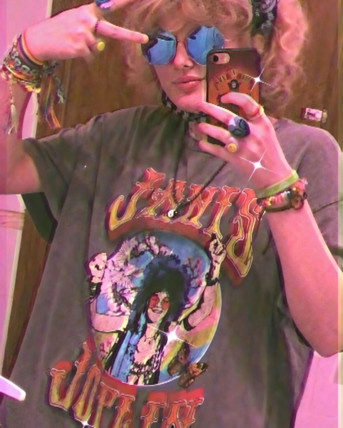 В последнее время она всё чаще выбирает образ неформальный, присущий рокерам-металлистам: кожанки, шипы, браслеты с шипами, тёмные очки и футболки с соответствующими принтами.