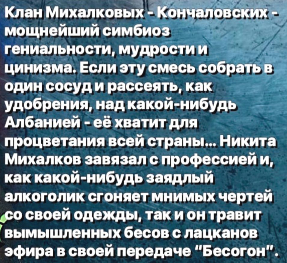 Михалкова он характеризовал емко и жестко: гениальный и циничный приспособленец. Слово «гениальный» здесь не было скидкой, а «приспособленец» — не было случайной обидой. Это была формула, в которую Ширвиндт уложил всё свое неприятие.