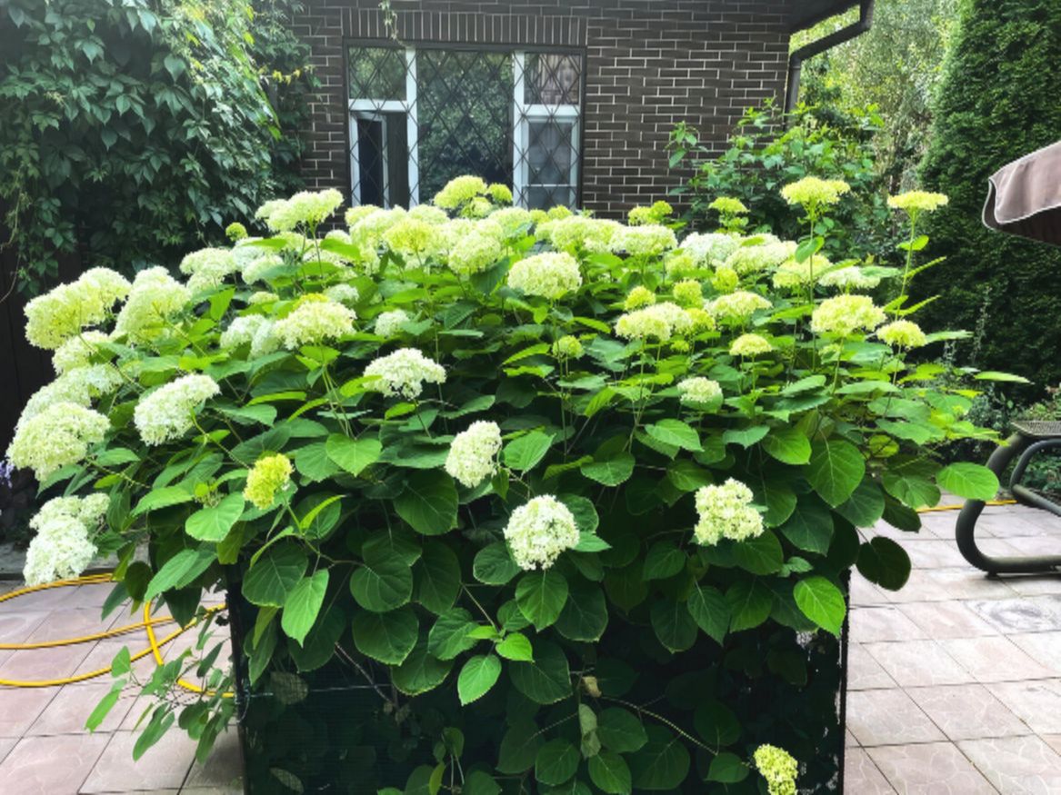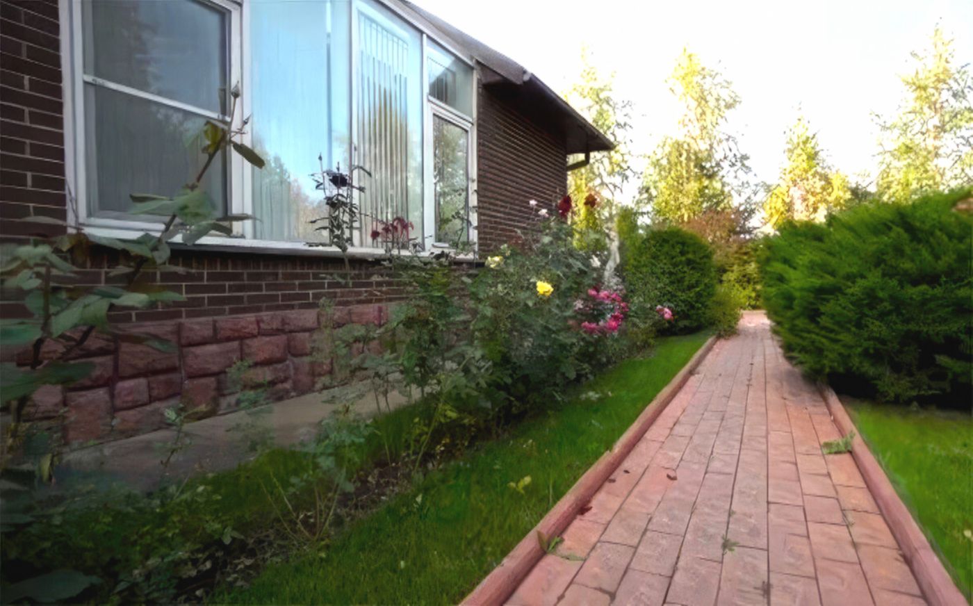 Двухэтажный коттедж окружён садом, плодовыми деревьями и теплицами. Выйти на улицу можно сразу через несколько дверей, и у каждой — своя небольшая терраса. Одну из них некоторое время назад полностью обновили в рамках популярного телевизионного проекта.