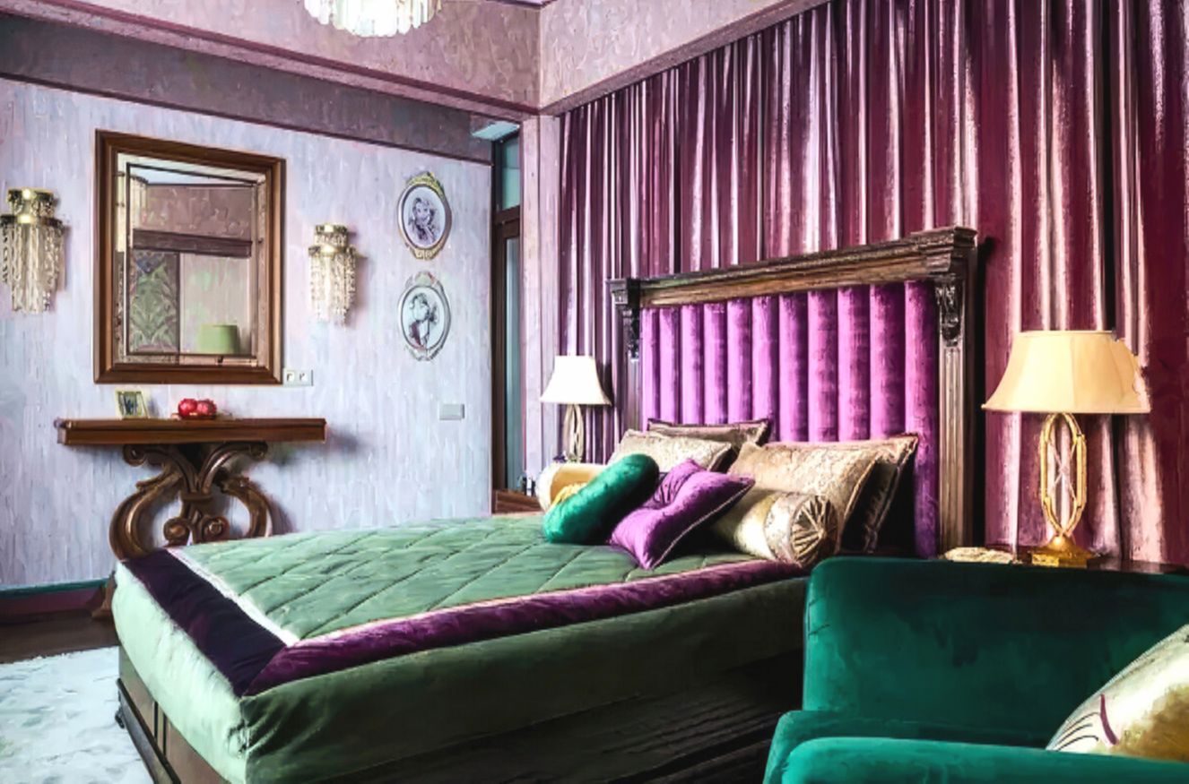 На втором этаже разместились спальни и рабочий кабинет с библиотекой. К оформлению своей спальни Тарасова подошла особенно тщательно. Здесь использованы сразу несколько видов итальянских обоев на флизелиновой основе.