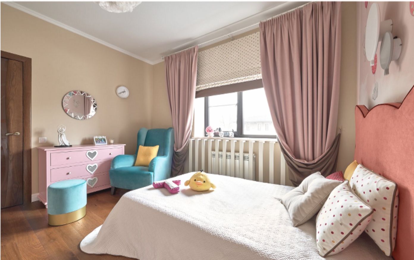 Детская комната в доме была изначально, но выглядела слишком «взросло». Полную переделку делать не стали, решили обновить пространство с помощью цвета и деталей.