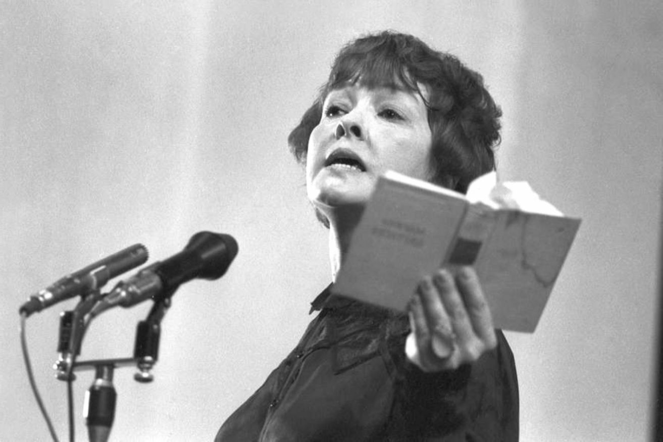 И тут вскакивает семнадцатилетняя студентка с тяжёлыми косами и гневно кричит: «Революция не умерла! Революция больна, но ей ещё можно помочь!» Все замолчали. Начинающий поэт Евгений Евтушенко, тут же шепнул другу: «Кто это?» «Это Беллочка Ахмадулина. Стихи пишет», — ответил тот с гордостью.